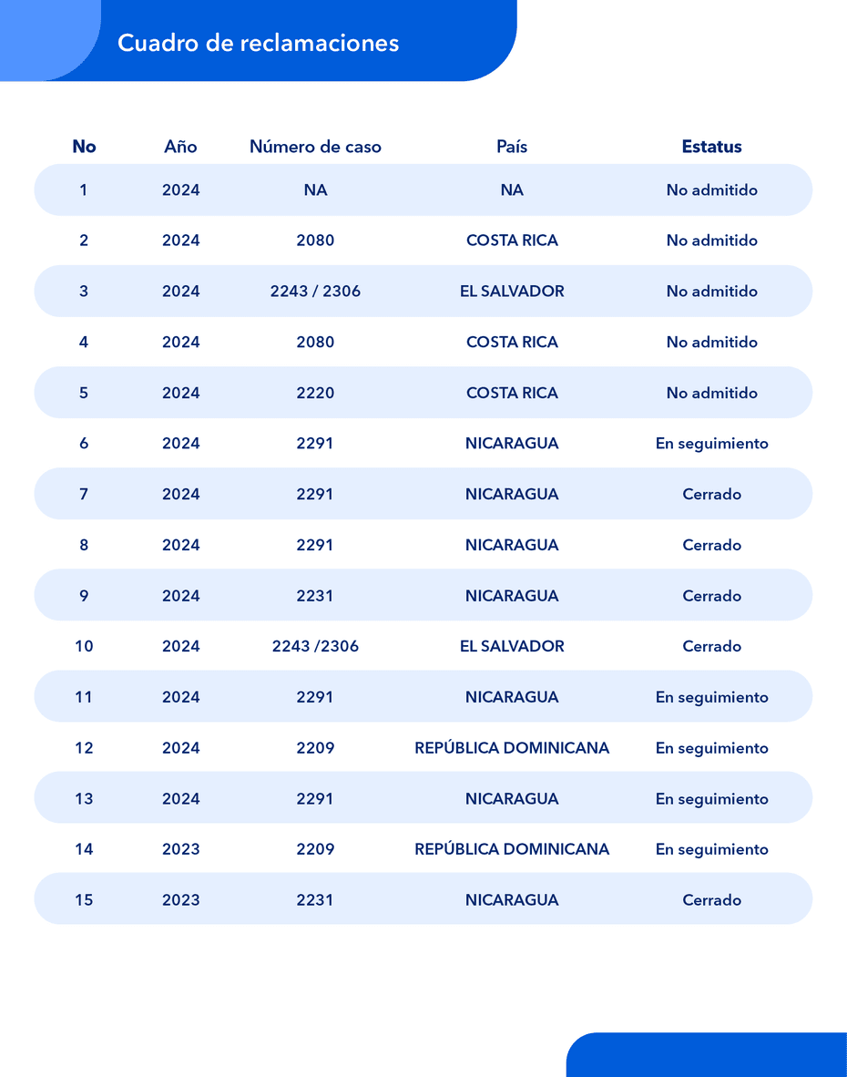 En cumplimiento con este compromiso, a continuación, se presentan las quejas o reclamos registradas o en proceso de resolución durante el período comprendido entre el 1 de enero de 2023 y el 31 de diciembre de 2025